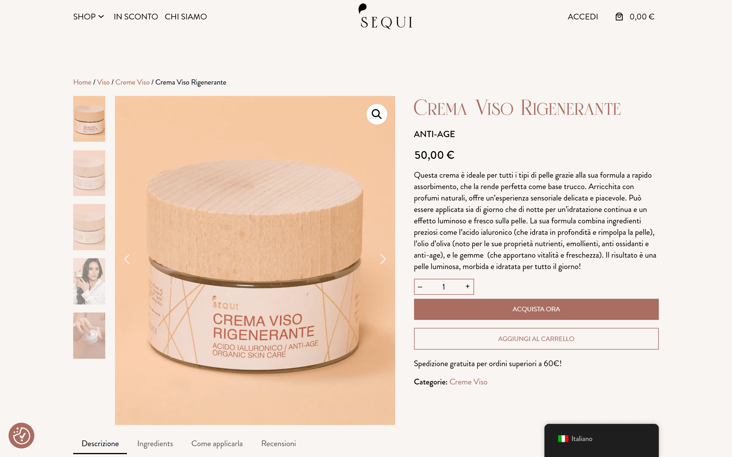 Il focus era creare un sito che non solo facilitasse l’acquisto, ma trasmettesse i valori di autenticità e sostenibilità che caratterizzano Sequi Cosmetics.